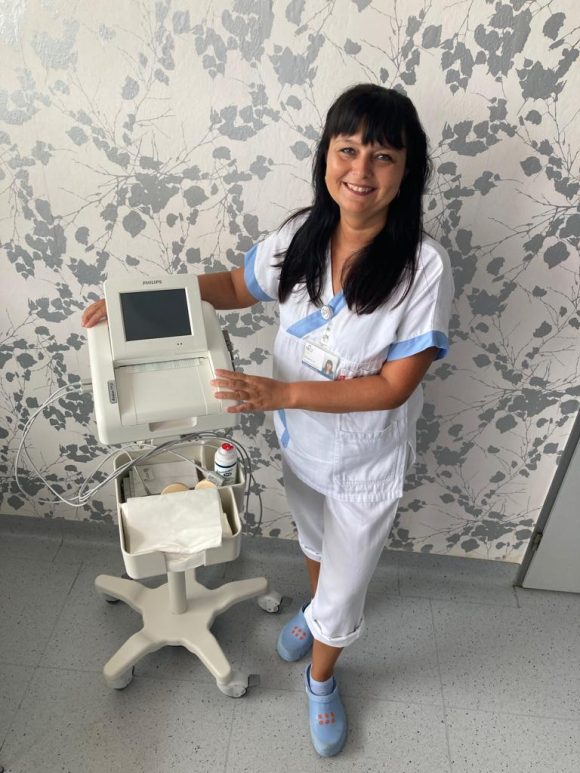„Monitorace srdeční akce v průběhu porodu je důležitým ukazatelem zdravotního stavu dítěte. Nové ctg monitory jsou určené pro rodící ženy a sledují srdeční akci děťátka a sílu děložních kontrakcí,“ popisuje primářka gynekologicko-porodnického oddělení Petra Herboltová.