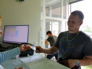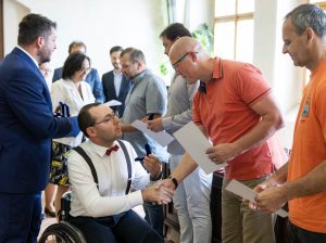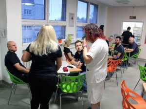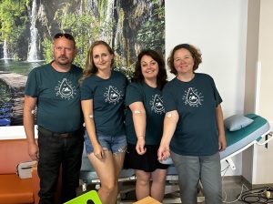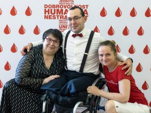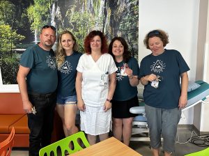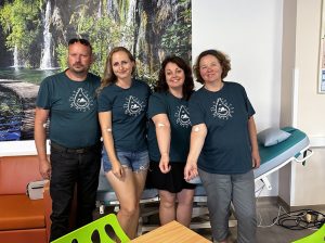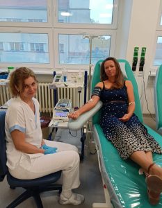 Dnes (27. 6. 2024) k nám na odběrové středisko přišli darovat krev členové spolku Vodomílek – poskytuje tělesně postiženým lidem možnost zaplavat si pravidelně a bezpečně pod dozorem v bazénu.