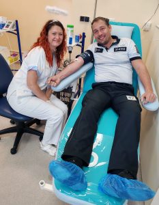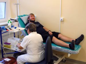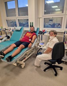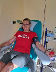 Pravidelně k nám chodí darovat skupina dárců z jihlavského Sokola. Dokonce si kvůli darování pořídili i tematická trika. Děkujeme 😊