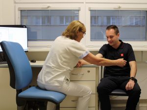- Zástupkyně pojišťovny VoZP na odběrovém středisku 9.4.2024