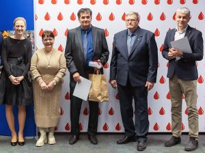 Na podzim 2023 byli oceněni dárci krve za 80, 120, a 160 odběrů v Kongresovém sále Kraje Vysočina.