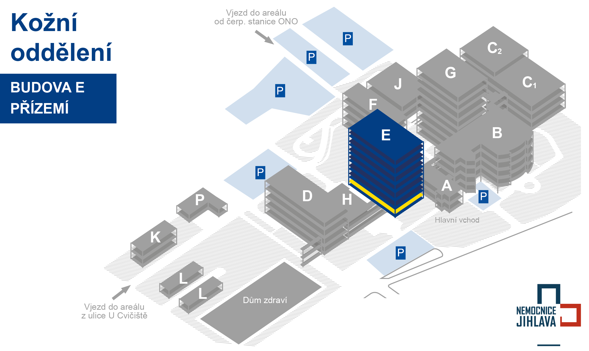 Kožní oddělení Nemocnice Jihlava má 20 lůžek, kde jsou hospitalizovaní pacienti se závažnými kožními a pohlavními chorobami. V ambulantním sektoru jsou vyšetřováni a sledováni pacienti se závažnými formami chorob, vždy po předchozím objednání nebo domluvě s obvodními dermatology.